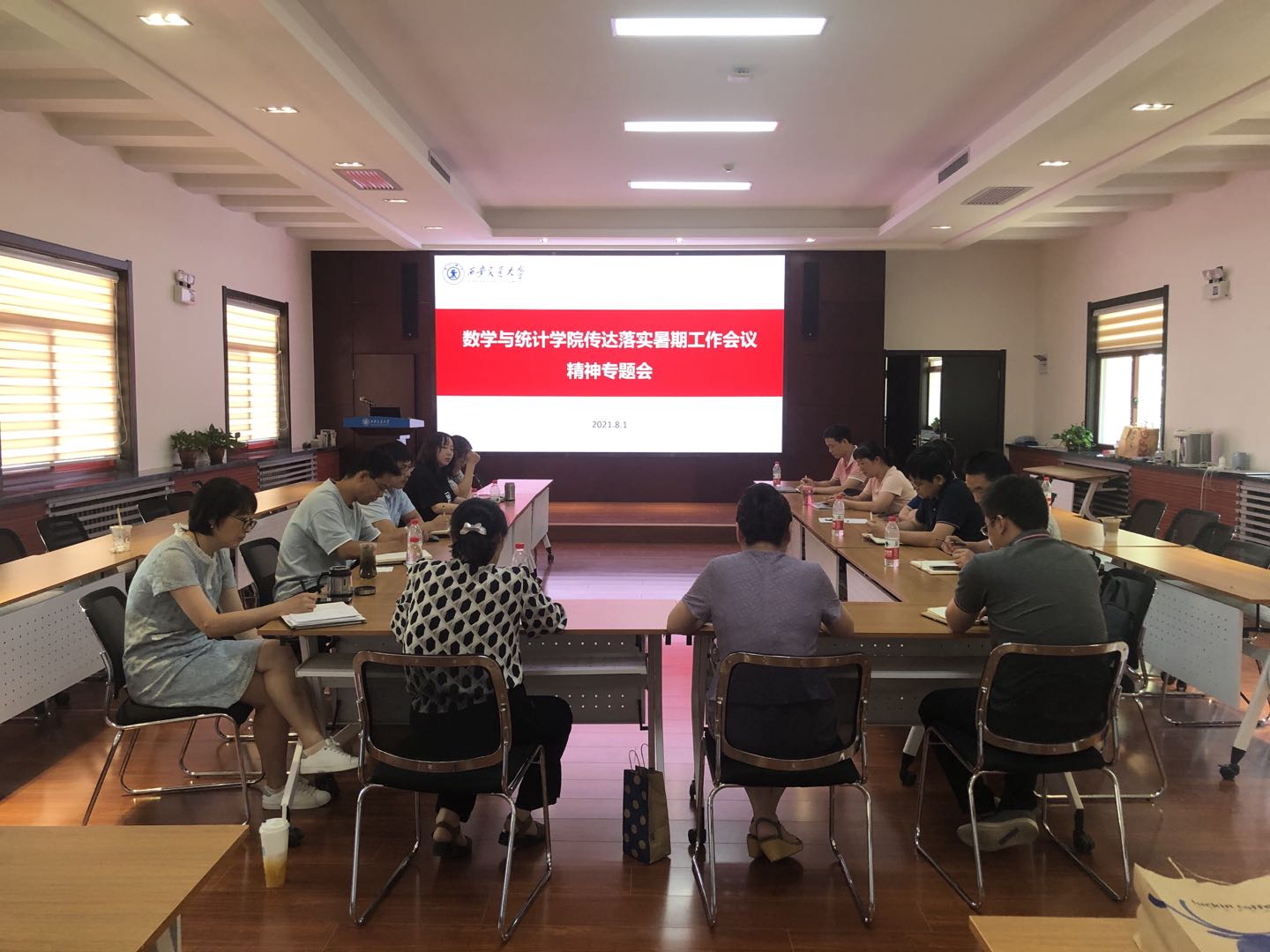 颜莉书记梳理了卢建军书记、王树国校长在学校暑期工作会议上的讲话精神要点,并结合学院工作实际谈了认识和体会。她表示,在全院师生的共同努力下,学院上半年取得了显著成绩,下半年学院工作重点包括几个方面,一是要进一步加强党的建设,坚持贯通学习习近平总书记“七一”重要讲话、习近平总书记关于教育、科技的重要论述,持续推进“我为师生办实事”实践活动,切实解决师生“急难愁盼”问题,推进党史学习教育走深走实。二是深化课程思政建设,深入挖掘数学学科课程思政元素,提高数学课程思政实效。三是继续加强教师队伍建设,坚持党管人才,充分发挥人才办公室作用,为人才成长发展提供良好的软环境,注重师德师风建设,打造德才兼备的高水平师资队伍。四是进一步加强学科建设,继续做好第五轮学科评估相关工作,充分利用好国家层面和学校层面关于加强基础学科建设的政策,优化学科体系,在强化应用交叉特色的同时,持续推进基础数学和统计学的发展。五是坚持立德树人根本任务,落实“三全育人”,充分利用好学院高水平科研平台,推进产教融合、协同育人,不断提升人才培养质量;六是高度重视疫情防控工作,充分认识疫情防控的严峻性和紧迫性,严格落实学校关于疫情防控工作的要求,以保障师生身体健康和生命安全。