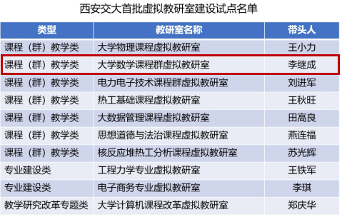 “大学数学课程群虚拟教研室”入选首批虚拟教研室建设试点名单。