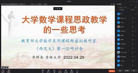 2022年4月29日下午,教育部首批虚拟教研室建设试点——大学数学系列课程群虚拟教研室(一楼一凤