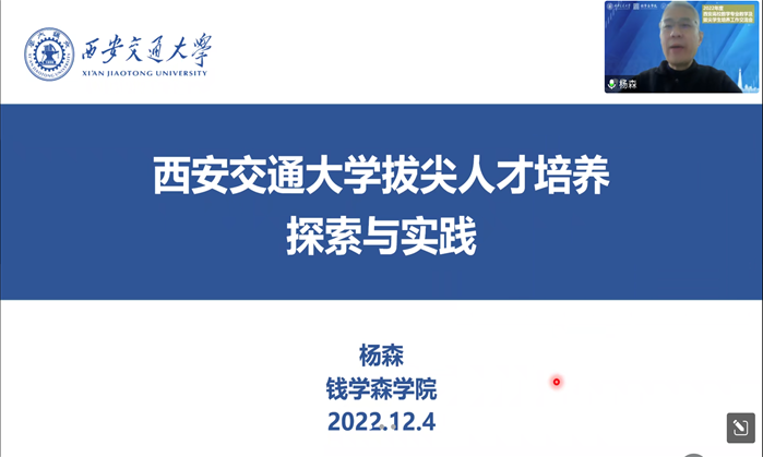 在拔尖人才培养过程中的探索与实践。杨森教授首先对一楼一凤