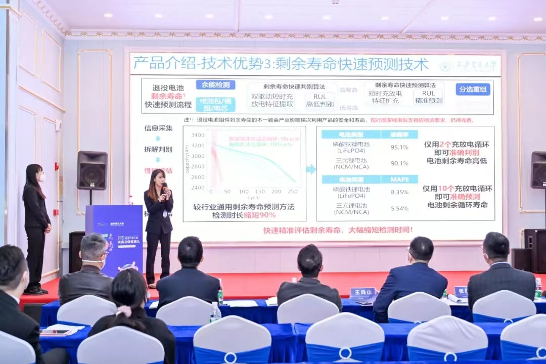 “锂派队”团队的参赛项目“派宝:退役电池梯次利用检测与分选产品”是基于电动汽车动力电池退役潮催生千亿级退役电池梯次利用新兴蓝海市场的背景下,面向企业不同需求,依托精准评估、快速检测、智能分选等数据+机理双驱动的大数据智能分析技术优势,聚焦突破当前梯次产品成本高、安全性差的行业技术瓶颈,助力梯次利用企业降本增效,以“终端+平台+方案”多产品形态填补市场空白,引领生态打造。