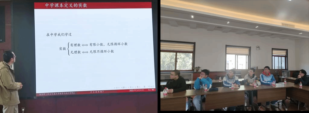 陆亚明副教授从“什么是实数”谈起,深入浅出地介绍了数域的扩张。陆老师以同学们熟悉的中学课本对实数的定义为出发点,引出戴德金分割的概念,详细地展示了人类对数的认识从自然数到有理数再到实数的发展过程。陆老师的报告将中学内容和大学内容紧密衔接,既有科普性又具学术性,使同学们获得了丰富的知识,也启发了同学们的思维。