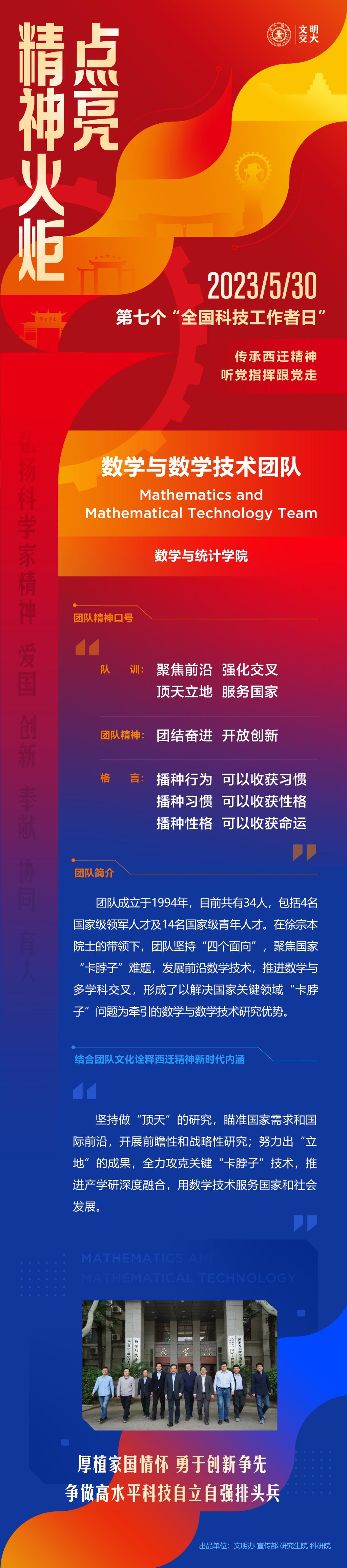 在中国科学院院士徐宗本的带领下,逐步走出了一支材优干济、朝气蓬勃、敢闯敢拼、团结奋进的研究队伍,现有主要成员34人,包括4名国家级领军人才及14名国家级青年人才。主持国家重点研发计划、国家自然科学基金重大、重点项目等27项,相关成果获国家自然科学二等奖、国家科技进步二等奖、陕西省基础研究重大贡献奖、陕西省自然科学奖一等奖等重要奖项,团队成员获陈嘉庚信息技术科学奖、华罗庚数学奖、苏步青应用数学奖、国际IAITQM理查德·普莱斯数据科学奖、CSIAM吴文俊应用数学奖、强国青年科学家等重要荣誉。