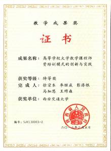 获国家级教学成果奖10项,国家级教学奖励13项,国家级一流本科课程5门,省级教学成果奖8项,省级教学奖励18项,发表教学研究论文30余篇。