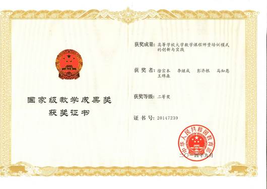 高等数学、复变函数两门课程获得教育部办公厅颁布的第一批“国家精品资源共享课 ” 。