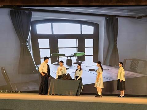 师生打造的话剧《“科学巨匠”吴文俊》在校内首次演出。