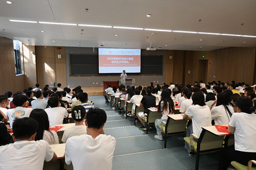 在创新港涵英楼5-1W105教室隆重举办了2024级研究生迎新会暨开学第一课。此次活动标志着新一届研究生正式开启了他们的学术生涯。学院党政领导、研究生教务、研究生辅导员,以及全体2024级研究生新生出席了本次活动。会议由学院党委副书记李义宝教授主持。