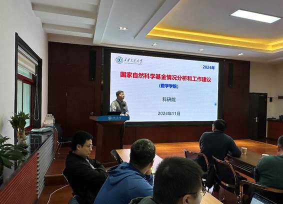 表示诚挚的感谢和欢迎,对参会师生申报基金的积极性表示肯定和鼓励。孙建永院长强调国家自然基金申报的重要性,希望申报教师注意关注政策的变化和重要时间节点,提前构思、注重选题,指出申报教师要关注申报要求的变化调整,注重科研工作的积累和工作成效的凝练,建议申报教师以清晰的思路和准确的语言撰写出高质量的申请书,并表示学院将从多方着手,为学院2025年国家自然科学基金申报工作保驾护航。最后,孙建永院长祝愿各位教师在本年度自然基金申报中再创佳绩。