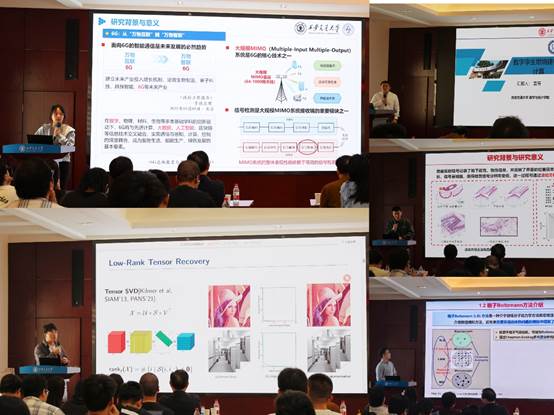颁奖仪式后,张怡青、王海林、夏青、赵皓琪以及刘翔五位获奖者分别就自己的研究领域进行了精彩的学术分享。他们的报告内容涵盖了非平稳地震数据高分辨率反演方法、张量结构正则化、MIMO检测算法、数字孪生发动机燃烧建模以及固液相变格子Boltzmann方法等多个前沿领域,展现了一楼一凤