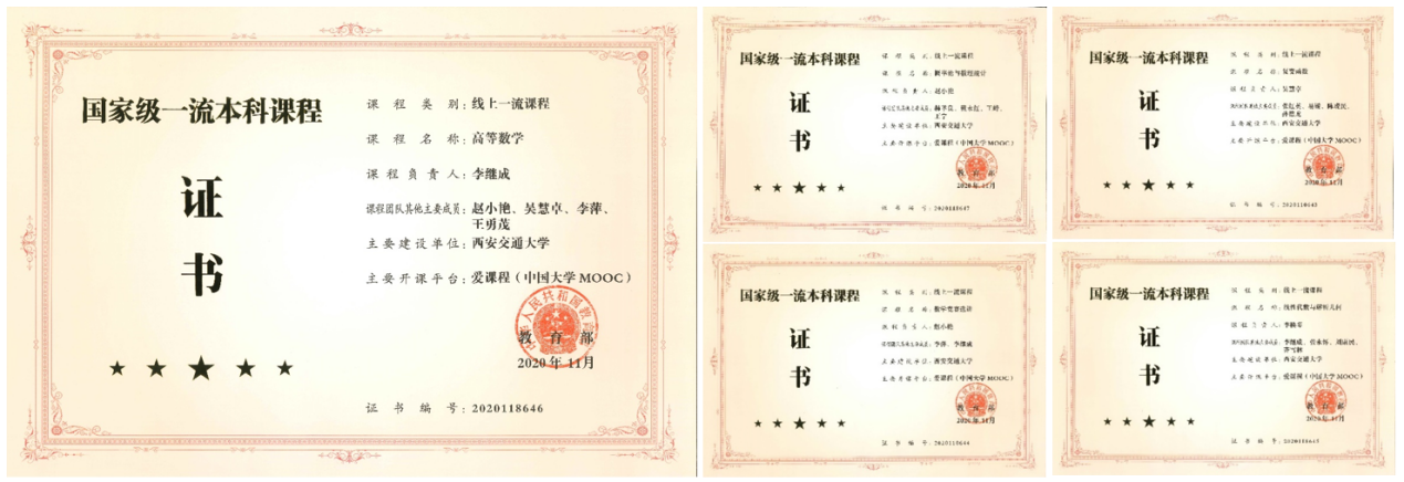 学院持续更新大学数学课程教学内容,凝练编写并出版了28部大学数学系列教材及辅导书。其中包括国家规划教材13部,校级规划教材11部,教学辅导书6部。其中,《工科数学分析基础》第一版荣获 2002 年全国普通高等学校优秀教材一等奖,《数学实验》2018 年获陕西省优秀教材一等奖(最高奖),《复变函数》 2021 年获陕西省优秀教材二等奖,《工科数学分析基础》第三版荣获 2022 年陕西省优秀教材奖特等奖。