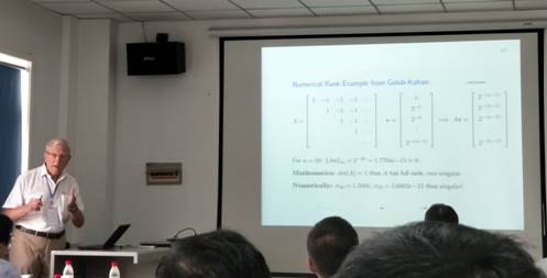 会议期间,苏黎世联邦理工大学Walter Gander教授带来了题为“Computing the SVD”的精彩报告,李旭副教授、潘建瑜教授、任志茹副教授、陈小平博士、伍渝江教授、张建军副教授、张建华副教授、朱睦正教授等先后介绍了各自的近期工作,给大家呈现了精彩纷呈的学术报告。报告内容涵盖了矩阵奇异值计算、线性方程组的高效迭代方法和预处理技术、矩阵方程的迭代方法、非线性特征值计算以及它们在医学图像成像和处理中的应用等领域的最新成果和研究进展。与会专家就报告内容及各自关心的问题进行了充分的沟通和交流。