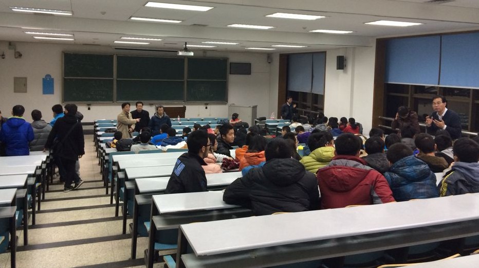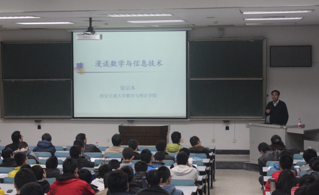 各系系主任。讲座于18日晚7:10在主楼C座305教室准时开始,而早在7:00左右,讲座现场已经坐满了求知若渴、前来听讲的学生。同学们对于“数学信息与技术”的兴趣,以及对徐宗本院士的敬仰,让略带寒意的气氛变得异常热烈。