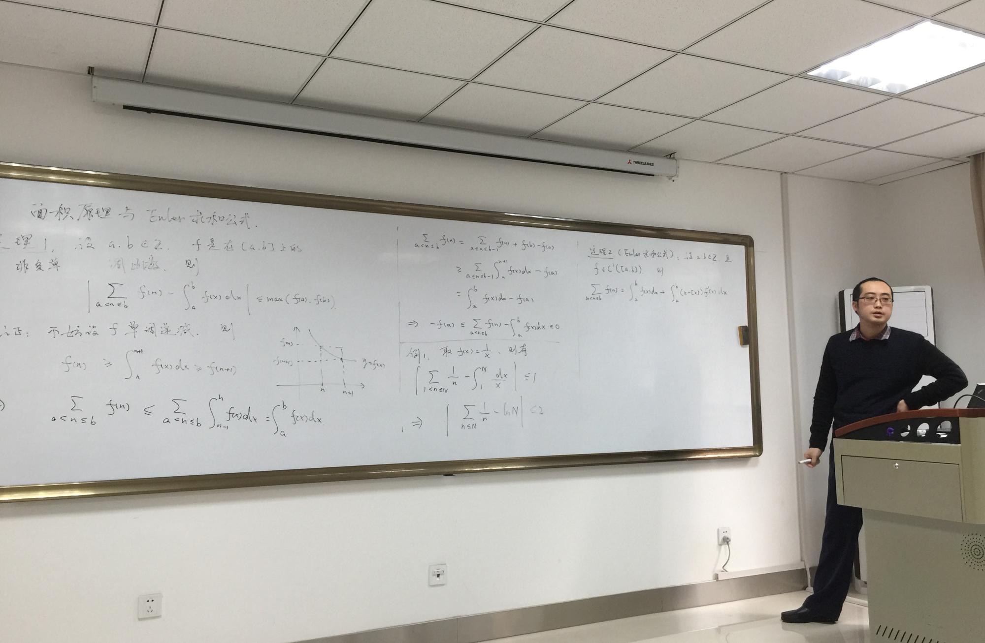 陆亚明副教授分别针对《变号级数的敛散性》及《面积原理与Euler求和公式》讲授了示范课,并谈及了长期授课过程中所积累的经验和发现的问题。