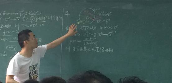 课堂上,张强老师演示了Brouwer不动点定理2维情形的证明,以生动形象的举例解释了定理相关的概念和要点,在推导过程中强调了该定理的关键约束因素,加深了同学们对该知识点的理解。同时,张强老师讲解了代数基本定律的拓扑证明。他将拓扑学的定理融入线性代数,从拓扑学的角度引导学生证明线性代数领域的定理,从3维矩阵推广到n维矩阵,引导学生学习了拓扑学定理的普适性和实用性。