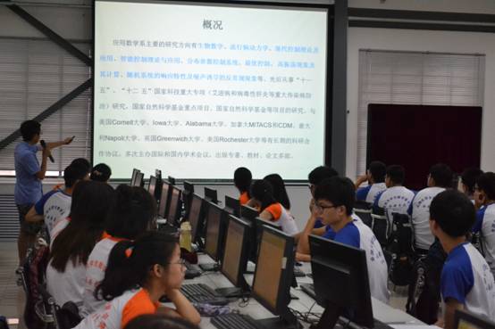 的各个系别——计算科学系、信息科学系、数学系、应用数学系、统计系以及大数据实验室的系所情况、师资力量、专业方向等做了细致的讲解,让同学们对一楼一凤