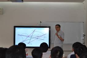 田刚教授以平面几何中著名的Pappus定理、Pascal定理为出发点,介绍了古典几何的发展历程,并渐渐地将大家的视角从古典平面几何提升至射影几何。在紧接着介绍了代数曲线、有理代数曲线等概念之后,他提出了代数曲线中一些有趣的命题,用最直观的方式诠释了代数曲线的知识是如何在初等平面几何中运用的,既给出了Pappus定理、Pascal定理、代数曲线上的元算的结合律等定理更为简洁的证明,更将这三个定理统一化,揭示了其内在的本质,向同学们展现了数学家是怎么一步一步思考问题、解决问题、推广问题的。