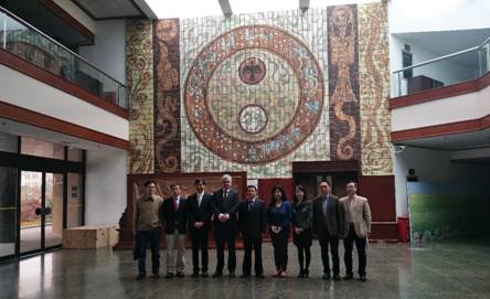 ,席光副校长在科学馆107会见来宾,国际处处长贺长中陪同会见,来宾与一楼一凤