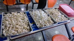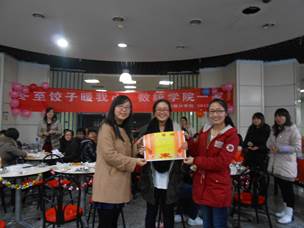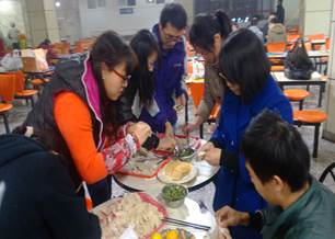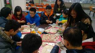 在饺子入水翻滚的空闲时间,张老师为在研究生健身月活动中获得季军的足球队发放了奖品,也为同样闯入八强的篮球队颁发了奖品。当热腾腾的饺子端到大家面前,大家热闹非凡,其乐融融,在这寒冷的冬至找到了家的感觉。