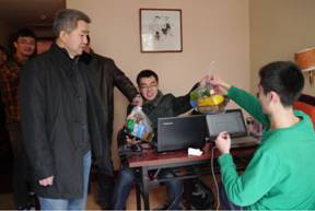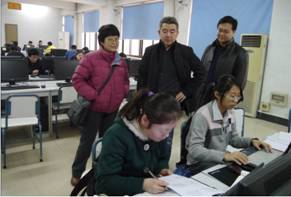 52个队伍156名学生报名参加了该项竞赛, 2月2日上午教务处副处长徐忠锋教授一行和教练组的朱旭、李换琴、符世斌等老师一起到计算机教学实验中心和康桥宾馆两个赛点看望参赛学生和教练组老师,为大家送上了慰问品。