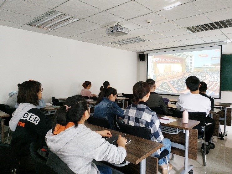 研究生代表在北五楼301开展纪念“五四运动”100周年主题团课活动,集中观看纪念五四运动100周年大会直播,认真听取习近平总书记的重要讲话。“奋斗是青春最亮丽的底色”“强者,总是从挫折中不断奋起、永不气馁”“青春要保持初生牛犊不怕虎、越是艰险越向前的刚健永毅”……总书记的这些话,让在场的同学们都热血沸腾!同学们针对新时代中国青年如何继续发扬五四精神这一话题展开了热烈讨论。