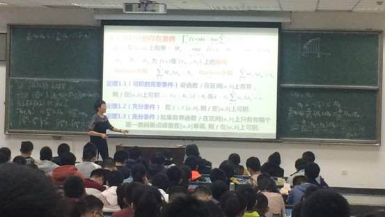 课堂上,赵小艳老师首先从函数可积分的充要条件出发,层层深入,细致讲解了函数可积分的两个充分条件。然后在此基础上,分析了函数可积分的必要条件,最后推导出定理。为了帮助学生更好地理解,赵老师对每个结论加以详细的证明,同时对每一种条件都列举了形象具体的函数示例,使学生对数学函数可积分的概念有了清晰的了解。最后,赵老师还结合课本当中的习题,给同学们进行讲解,逐步分析,让同学们对定理的应用与拓展有了更深刻的理解。