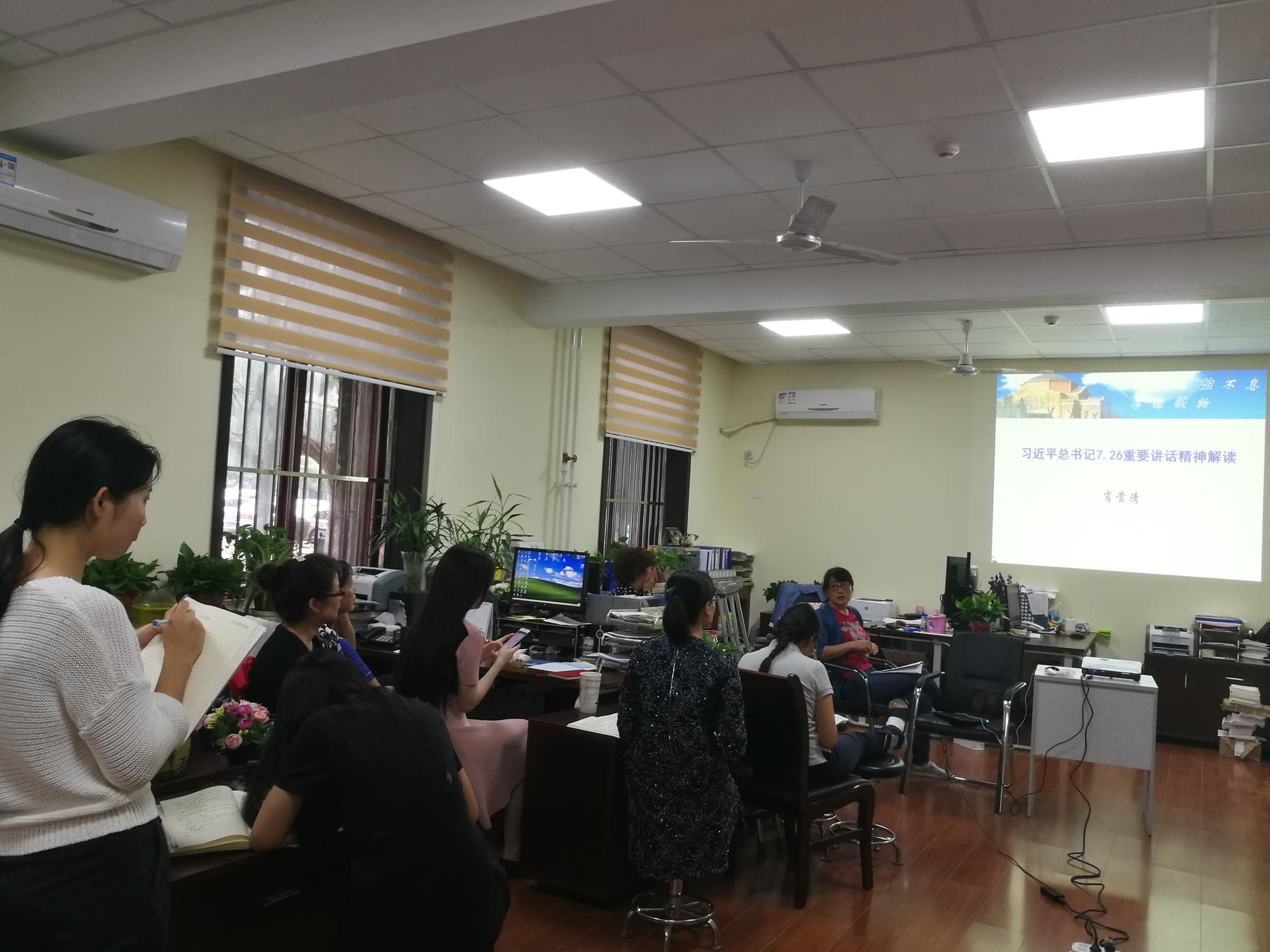 院机关党支部召开专题组织生活会学习习近平总书记7.26重要讲话精神。会议由支部书记刘晓瑞主持。本次会议特别邀请了学院党委副书记、党委委员易媛为支部全体成员解读习近平总书记7.26重要讲话精神。