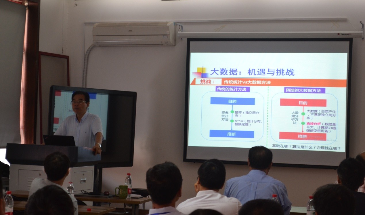 研讨会上,徐宗本院士就大数据中的科学问题和大家进行了深入探讨,并指出当前的大数据时代给统计学带了革命性的机遇和挑战。白志东教授就高维数据下的经典的统计问题遇到的困难和瓶颈进行深入浅出的讲解,并介绍了高维数据下其最新的研究成果。张志华教授、王友乾教授、黄永强教授及其他各位与会学者分别就自己领域的最新研究成果进行了报告和讨论。