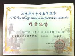 数学试验班11级学生仝昕、刘永杰参加了此次比赛。他们分别在几何与拓扑、分析与方程单项的个人赛进入全国前十六名,均获得优胜奖。从2012年起数学学院学生已连续三年在该项竞赛中取得名次。