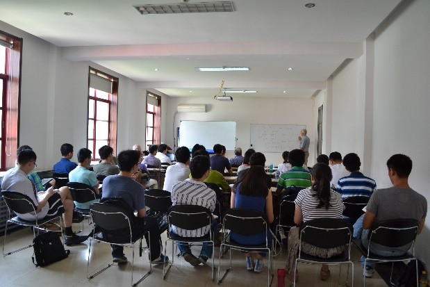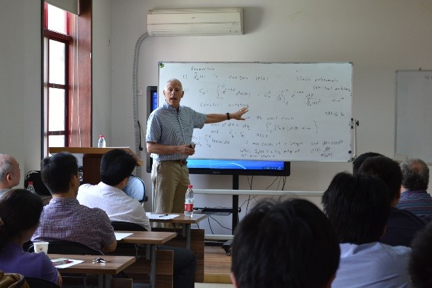 ,并与试验班师生开展系列学术交流活动。6月23日上午,Jeffrey S. Geronimo教授为数学试验班学生作了题为“Bivariate Fejer-Riesz Factorization”的学术报告,报告会由数学学院朱旭教授主持。