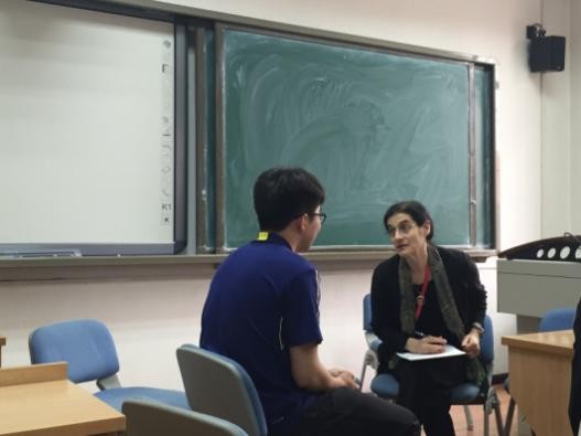 讲座结束之后,多位试验班同学对密歇根州立大学的交流项目产生了浓厚的兴趣,与Jeanne Wald教授进行了更深入的交谈。Jeanne Wald教授在座谈同时,为同学们播放了Jazz音乐,介绍了MSU提供的数学课程、课程的难度以及学业建议等。最后,Jeanne Wald教授逐一了解每一个同学的语言能力及兴趣方向等。部分在MSU交流过的高年级试验班同学也参与了讨论,分享了他们各自的收获与感受。