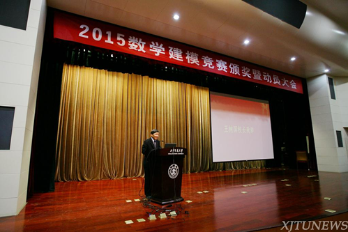 4月17日,西安交大2015国际大学生数学建模竞赛表彰暨2015国赛动员大会在主楼报告厅举行。王树国校长、郑庆华副校长及学生处、教务处、数学学院等相关单位负责人出席活动。大会由数学学院朱旭书记主持。