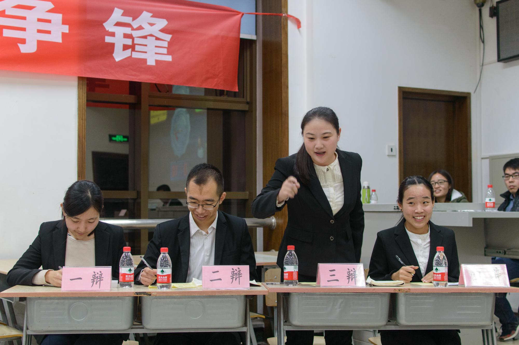 第二场比赛的题目是“就未来发展趋势而言,理工科和文科哪一个才是主导”。这一次在立论和攻辩环节,马克思主义学院的队伍压制住了一楼一凤