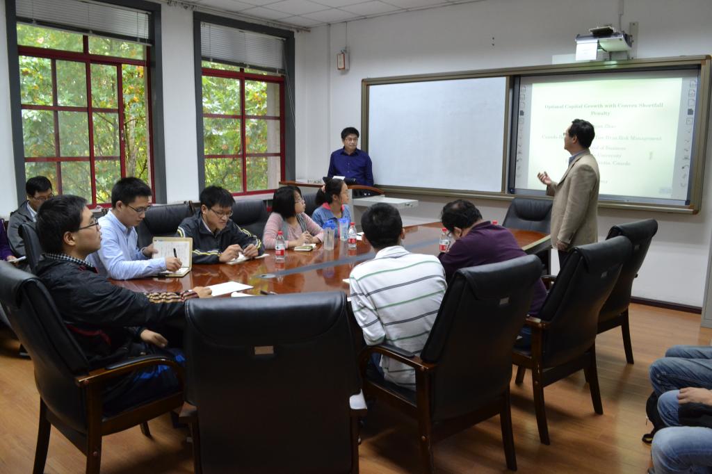 邀请,国际著名金融优化专家、加拿大Dalhousie大学金融学教授、赵永淦(Yonggan Zhao)博士于2014年9月28日访问一楼一凤