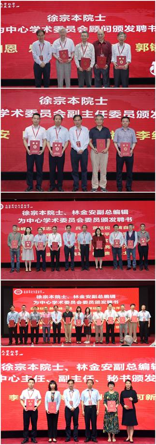 教育部高等学校大学数学课程教学指导委员会主任、中心学术委员会主任徐宗本院士,中心学术委员会副主任、高等教育出版社林金安副总编辑为中心学术委员会顾问、副主任委员、中心主任、副主任、秘书颁发聘书