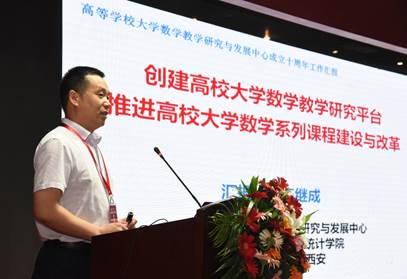 教育部高等学校大学数学课程教学指导委员会秘书长、中心学术委员会副主任、中心主任李继成教授作中心工作总结报告