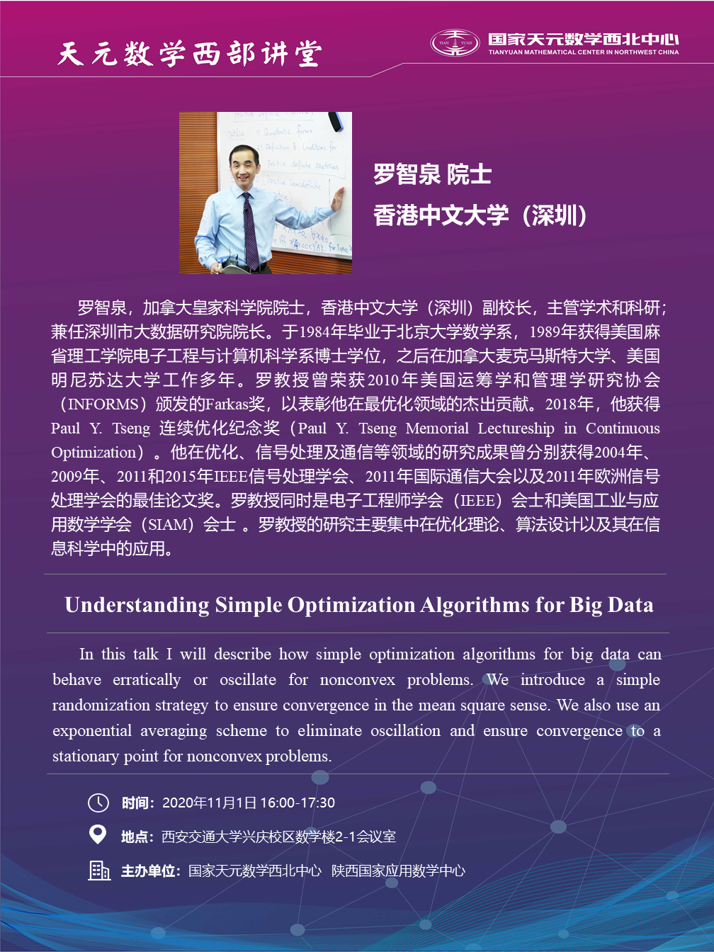 【天元数学西部讲堂】Understanding Simple Optimization Algorithms for Big Data