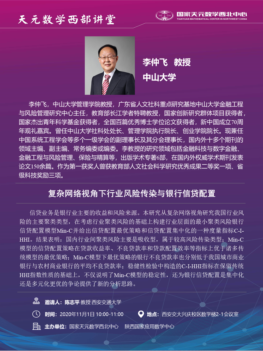【天元数学西部讲堂】复杂网络视角下行业风险传染与银行信贷配置