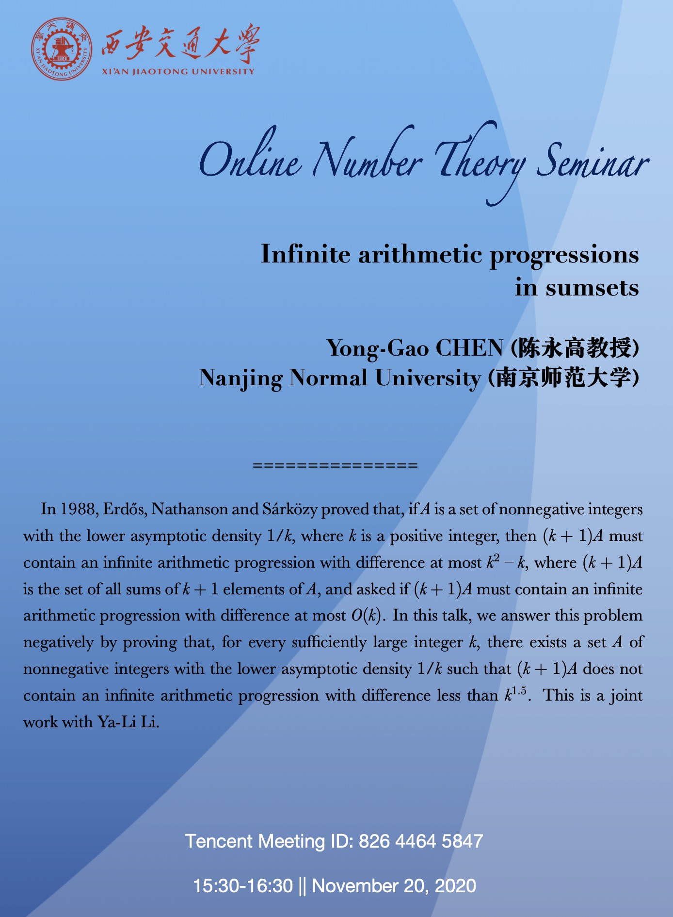 【数论讨论班】南京师范大学陈永高教授 (2020.11.20)