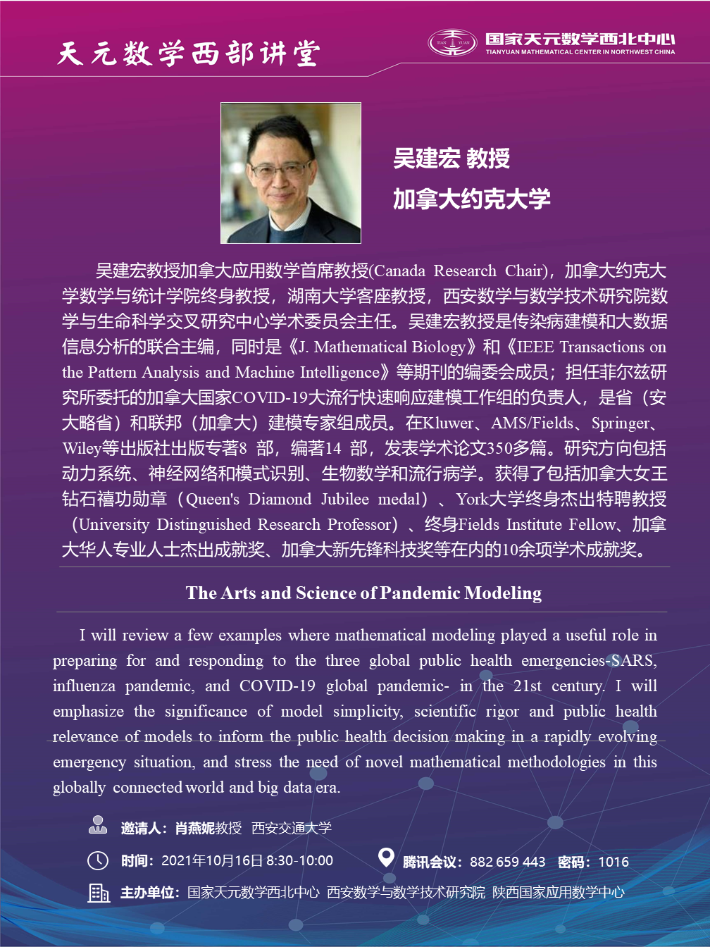 【天元数学西部讲堂】The Arts and Science of Pandemic Modeling