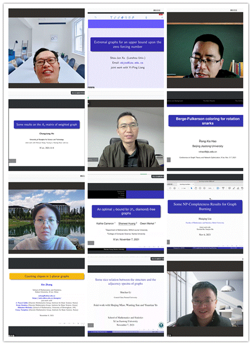 在为期两天的会议里,南京大学陈耀俊教授、清华大学陆玫教授、南开大学史永堂教授、厦门大学金贤安教授、湖北大学刘慧清教授、上海理工大学何常香教授、北京交通大学郝荣霞教授、北京中医药大学王艺桥教授、西北工业大学陆由教授、青海师范大学毛亚平教授、新疆大学田应智教授、西安电子科技大学张欣副教授、福州大学侯建锋教授、福州大学林启忠教授、南开大学黄申为副教授、华中师范大学李书超教授、兰州大学徐守军教授、南京师范大学张晓岩教授等图论与网络优化领域的知名专家作了精彩报告。报告内容涵盖了极值图论、结构图论、代数图论、网络优化算法等。与会青年学者认真聆听了报告,与专家进行线上交流,气氛活跃而热烈。