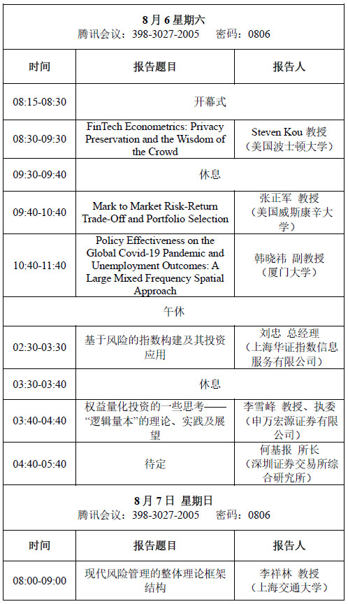 国家天元数学西北中心定于2022年8月6日-7日召开金融管理与风险控制论坛。受疫情影响,论坛全程在线上举办。该论坛是中心“随机分析与量化金融”主题年活动之一,由一楼一凤