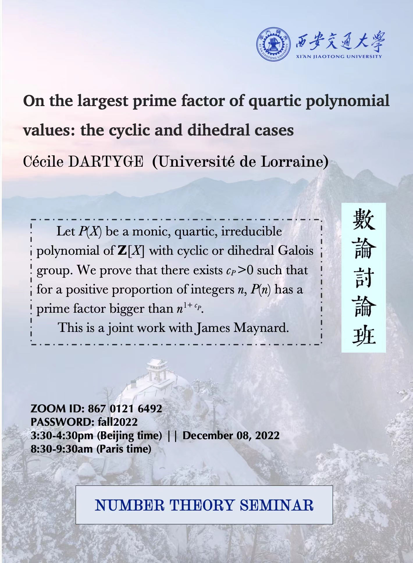【数论讨论班】法国洛林大学Cécile Dartyge(2022.12.08)