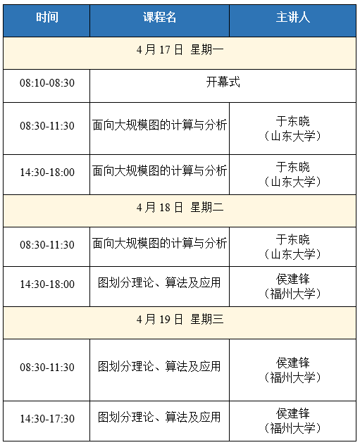 徐宗本院士顶层设计,闫桂英研究员、王卫教授、鲁红亮教授召集策划。讲习班将详细介绍图计算及其应用问题,包括图论中基本算法、图划分算法及其在通信网络中的应用、面向大规模图的计算与分析、图计算及其在计算机中的应用等问题,讲授这些研究领域最新的研究成果及方法。
