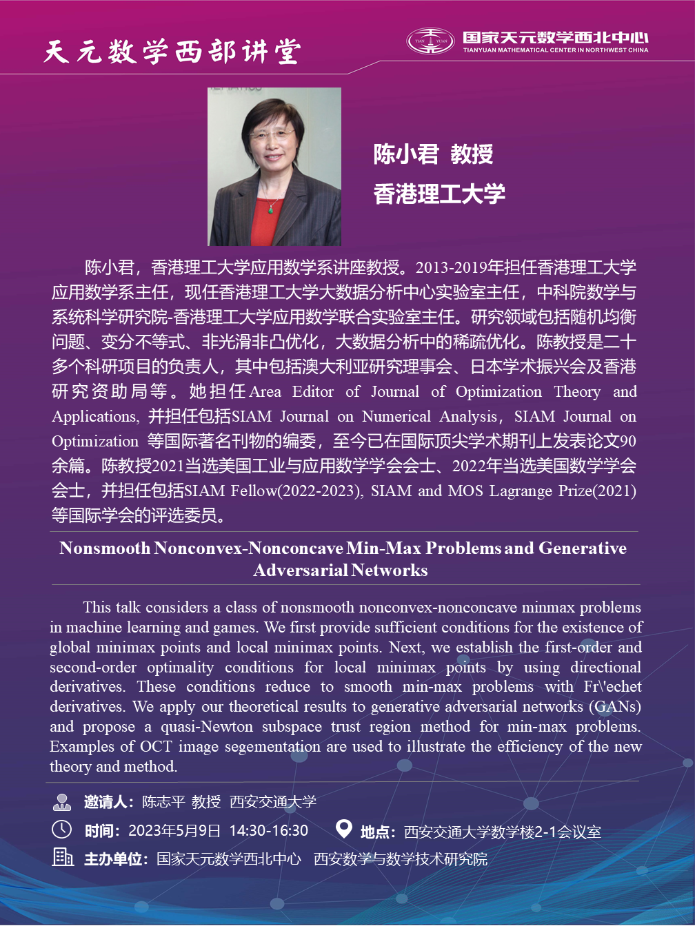 【天元数学西部讲堂】香港理工大学陈小君教授学术报告