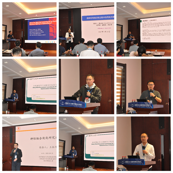 开幕式后,会议进入学术报告环节。香港城市大学张青富教授、皇家墨尔本理工大学李晓东教授、中国科学院大学韩丛英教授、中山大学王甲海教授、华南理工大学黄翰教授、国防科技大学王锐研究员、重庆大学冯亮教授、惠灵顿维多利亚大学梅一副教授、中山大学张子臻副教授、南方科技大学王振坤副研究员、南京大学钱超副教授等专家作了十余场精彩的学术报告,内容包括“学习优化方法及其在车辆路径规划问题中的应用”、“微搜索算法及其应用”、“图神经网络训练过程中的两类关键问题研究”、“基于深度强化学习的杀伤链设计优化”、“神经组合优化方法的一些研究进展”、“深度强化学习求解多目标组合优化问题”等等。报告专家分享了他们在图优化和人工智能领域最新的学术研究及应用成果,并同与会学者们深入研讨了如何利用深度强化学习等工具直接求解图优化问题,以及这些方法在无线通信、复杂网络、博弈、图论等领域中的应用。