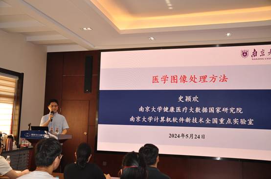 牟轩沁教授主讲了“医学成像的数学新理论与成像方法”,深入讲解了CT成像和重建理论,包括Radon变换的定义和逆变换,以及CT重建算法,并讨论了现代CT重建中存在的问题,提出了基于微分几何分析和稀疏扫描重建的新思路。南京大学史颖欢教授则围绕医学图像处理方法、医学大数据分析方法以及大模型时代的医疗AI进行了深入讲解,介绍了医学图像处理的基本知识,探讨了医学大数据分析的最新进展,并对未来的发展趋势提出了展望。