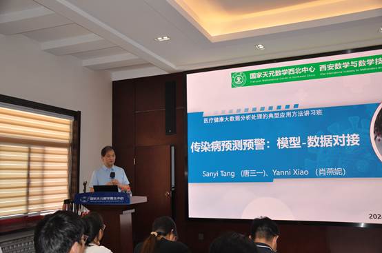本期讲习班共开设了“医学大数据的分析处理”、“医学成像的数学新理论与成像方法”和“传染病预测预警”三门课程。肖燕妮教授详细介绍了公共卫生的主要问题、建模和分析方法,并提出了“动力学模型+深度学习”思想。陕西师范大学唐三一教授讲解了疫情相关的多源数据类型及分析方法,分享了他在生物数学和生物统计学领域的研究成果,尤其是在传染病预测预警方面的应用。一楼一凤