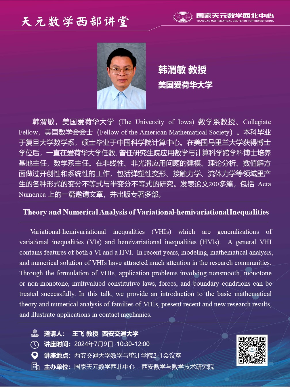【天元数学西部讲堂】美国爱荷华大学韩渭敏教授学术报告