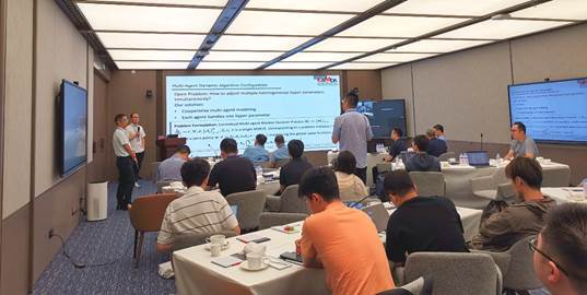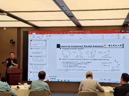 西安电子科技大学焦李成教授、香港城市大学张青富教授、南方科技大学唐珂教授等九位专家作大会报告。西安电子科技大学焦李成教授分享了深度学习的表征学习与优化,香港城市大学张青富教授分享了启发式算法的演变之利用大型语言模型实现高效的自动算法设计,西安电子科技大学王宇平教授介绍了数据挖掘中多个最长公共子序列问题的几种高效算法,南方科技大学唐珂教授分享了面向通用优化的两个系统的最新进展、案例研究与发展方向,华东师范大学周爱民教授介绍了基于关系模型的高代价优化,西安电子科技大学焦永昌教授介绍了赋形我国国土的星载多波束高增益天馈系统优化设计及其应用,南京大学钱超副教授分享了关于学习优化中学习配置算法和端到端学习两个方面的初步尝试,电子科技大学范衠教授讲解了基于设计自动化方法的机器人系统开发与应用,南方科技大学王振坤副研究员分享了可泛化求解大规模车辆路径问题的神经组合优化方法。