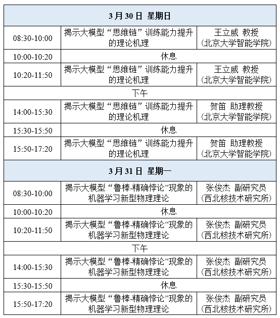 举办“揭示大模型机理的新一代机器学习数理基础讲习班”。该活动是中心2025“数学与人工智能”主题年活动之一。讲习班将针对现有以大模型为代表的机器学习方法底层数理机理不明、有效机制不清的问题,介绍能够揭示其有效性本质的底层数学、统计、物理及生物机理,从不同的角度、运用多样化的理论工具挖掘现代大模型运行的底层基础原理。